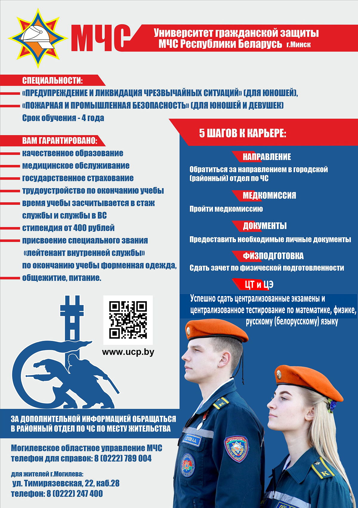 Дополнительную информацию о поступлении можно получить в Дрибинском районном отделе по чрезвычайным ситуациям по тел 8 (02248) 79-964