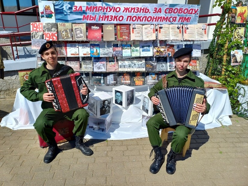 Основным источником информации для молодых людей являются новостные интернет-порталы, а также социальные сети и мессенджеры. Сотрудниками были сняты видеоролики: «Вечная память героям» https://www.instagram.com/reel/C6ybTe2InI_/?igsh=dnM1cWo4cms4aWNm , «Героев помним имена» https://www.instagram.com/reel/C9NrtvFo_Of/?igsh=MTJ3cGQzdWFweDk5NA , цикл видеороликов «80-летию освобождения от немецко-фашистских захватчиков посвящается…» https://www.instagram.com/reel/C8UO1WSILRP/?igsh=Zjc5a3ptcDc2dHl6, https://www.instagram.com/reel/C8evx97ILHZ/?igsh=bjFyZTNrMDNxM2t6