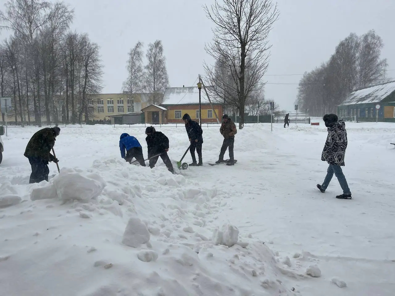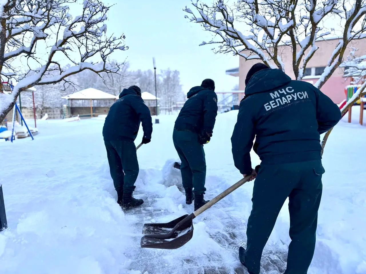 Сотрудники Дрибинского РОЧС помогли очистить от снега территорию Дрибинского детского сад...