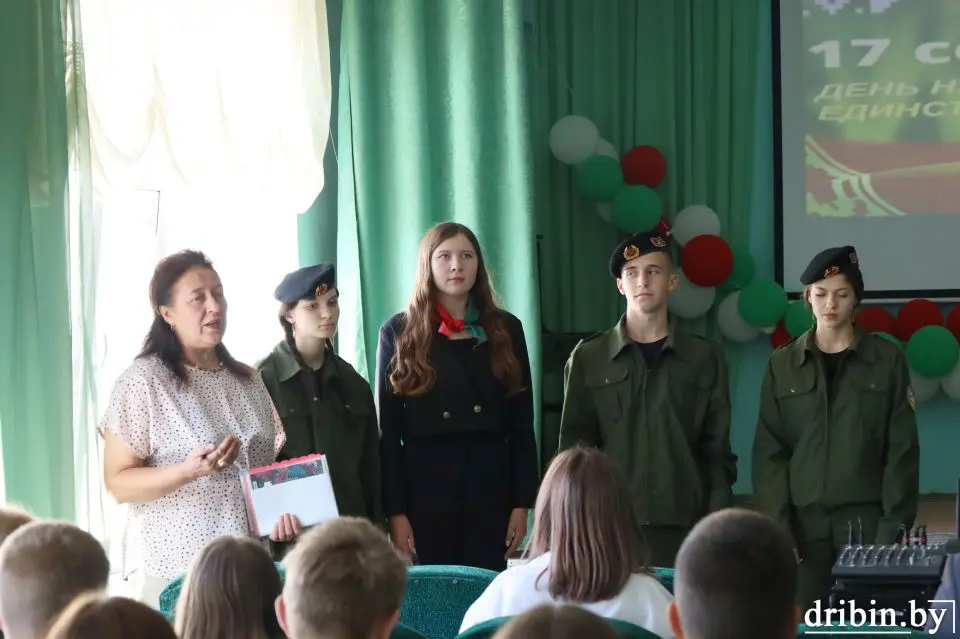 Затаив дыхание, слушали ребята рассказ Виктора Антоновича о борьбе жителей Западной Беларуси за свою свободу, о подпольной деятельности коммунистов и комсомольцев Западной Беларуси, о героях, имена которых стали символами освобождения — Вере Хоружей, Сергея Притыцкого, трижды приговоренного к смерти. Это о нем снят фильм «Красные листья», посвященный революционному движению в Западной Беларуси за освобождение от польской власти и присоединению к БССР. Виктор Антонович подчеркнул, что День народного единства — это весомый исторический фундамент современной государственности, символизирует национальную, государственную и территориальную целостность Беларуси. Этот праздник — символ исторического оформления белорусской нации, искреннего стремления белорусов жить одной семьей в собственном доме. Это ответ всем недоброжелателям: разделить белорусский народ не получилось раньше, не получится и впредь. День народного единства — 17 сентября — служит еще одним напоминанием о самодостаточности белорусской государственности, символизирует незыблемость территориальной и этнической целостности белорусской нации, формирует чувство сопричастности к стране и судьбе каждого гражданина.