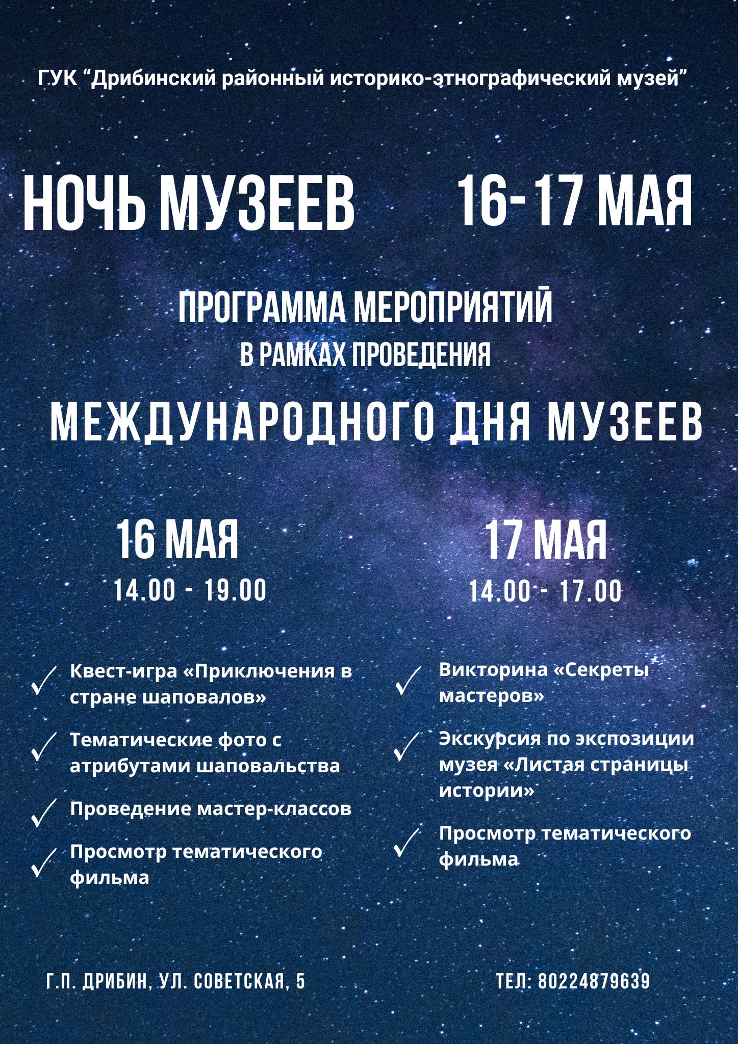 Ночь музеев пройдет 16-17 мая в Дрибинском районном историко-энтографическом музее
