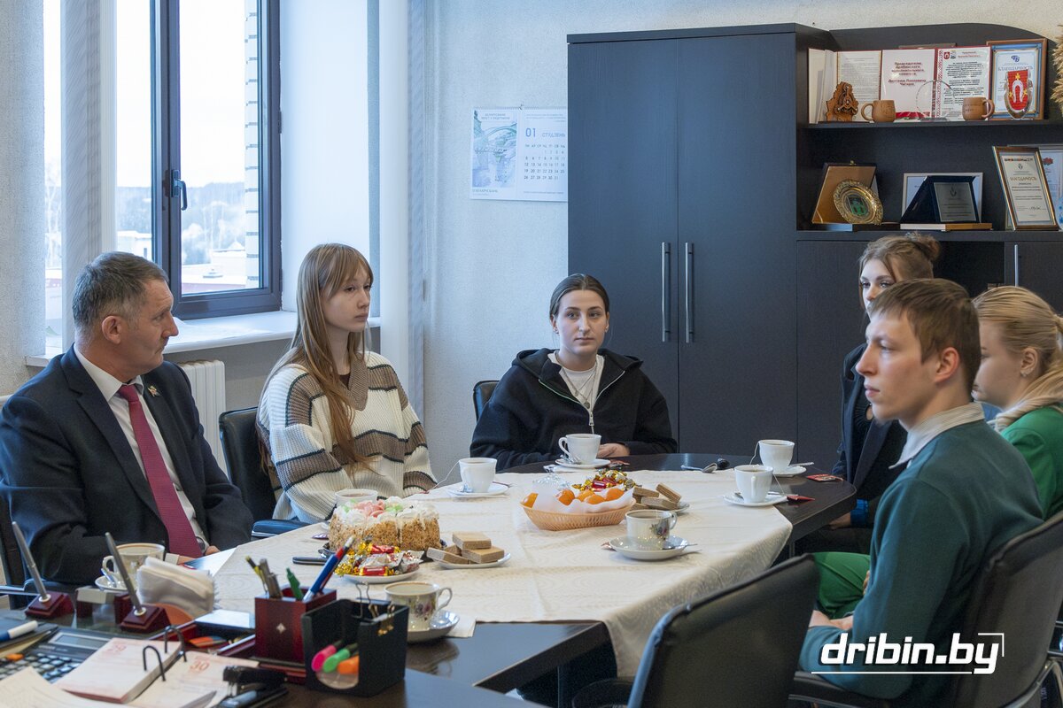 Дмитрий Павлович пригласил молодых людей в свой рабочий кабинет. Подобный формат общения у нас практикуется уже давно. Он создает атмосферу доверия, демонстрирует важность молодых кадров для нашего района, подчеркивает персональное внимание к каждому из приглашенных. Кабинет главы района создает официальную, но при этом камерную и располагающую к открытому диалогу обстановку. Здесь и прошла первая часть встречи, в ходе которой молодые специалисты рассказали о своих рабочих буднях и хобби, поделились дальнейшими жизненными планами. Сообща обсудили основные направления совместной работы на грядущий 2026 год. Поступили от молодежи и предложения относительно организации досуга. Так, участники встречи выразили пожелание посетить Музей Славы Могилевщины, а также провести ряд спортивных мероприятий, потому как спорт объединяет, настраивает на позитивный лад, помогает ближе познакомиться друг с другом.