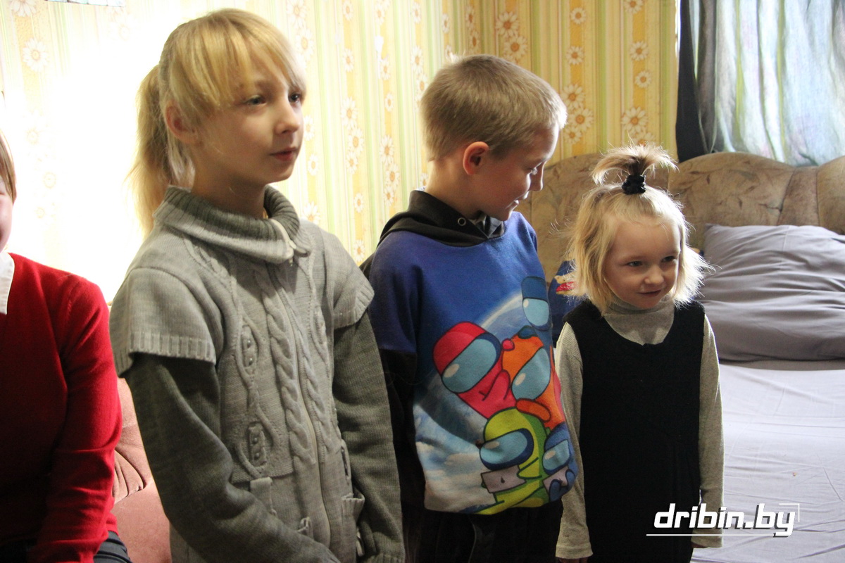 В семье Виктории Быковой воспитывается шестеро детишек, и сегодня с приятной миссией к ним приехали председатель районного Совета депутатов Тимофей Мартинович, заместитель председателя Дрибинского райисполкома, председатель Дрибинского районного отделения Белорусской партии «Белая Русь» Наталия Дубиковская, Дед Мороз со Снегурочкой и другие гости.
