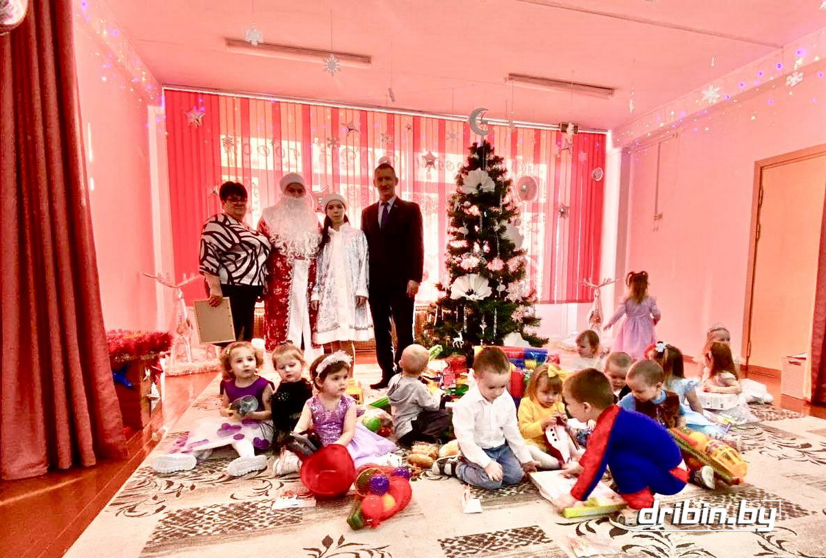 24 декабря у новогодней елки в детском саду №2 г. п. Дрибин добрым волшебником с подарками выступил Тимофей Мартинович.