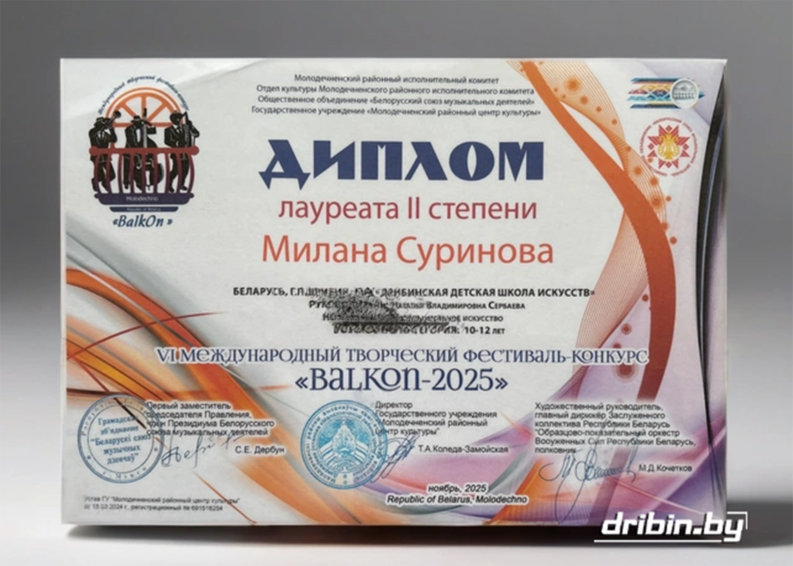 Учащаяся Дрибинской ДШИ Милана Суринова попала в число победителей международного конкурса