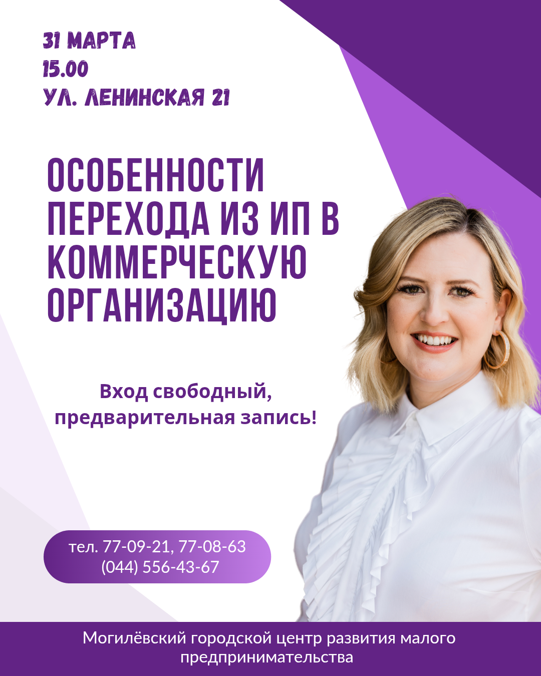 УКП «Могилёвский городской центр развития малого предпринимательства» проведёт семинар на тему «Особенности перехода из ИП в коммерческую организацию»