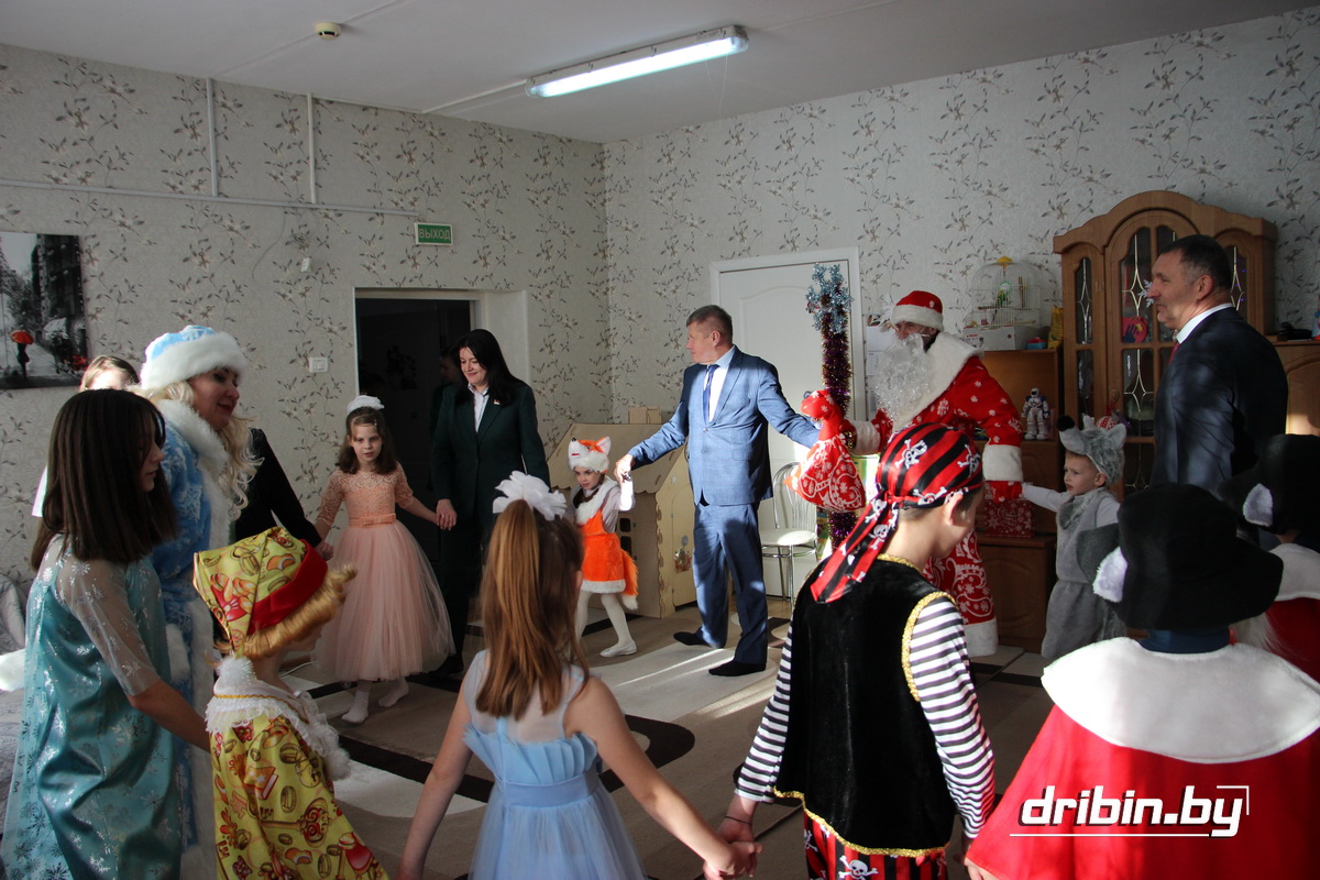 Поздравить ребят и их родителей с наступающим Новым годом и Рождеством в рамках благотворительной акции «Наши дети» сегодня приехали председатель Дрибинского районного Совета депутатов Тимофей Мартинович, заместитель председателя Дрибинского райисполкома Наталия Дубиковская, генеральный директор ОАО «Управляющая компания холдинга «Агромашсервис» Вячеслав Сосновский, представители отдела по образованию райисполкома и, конечно же, Дед Мороз со Снегурочкой.
