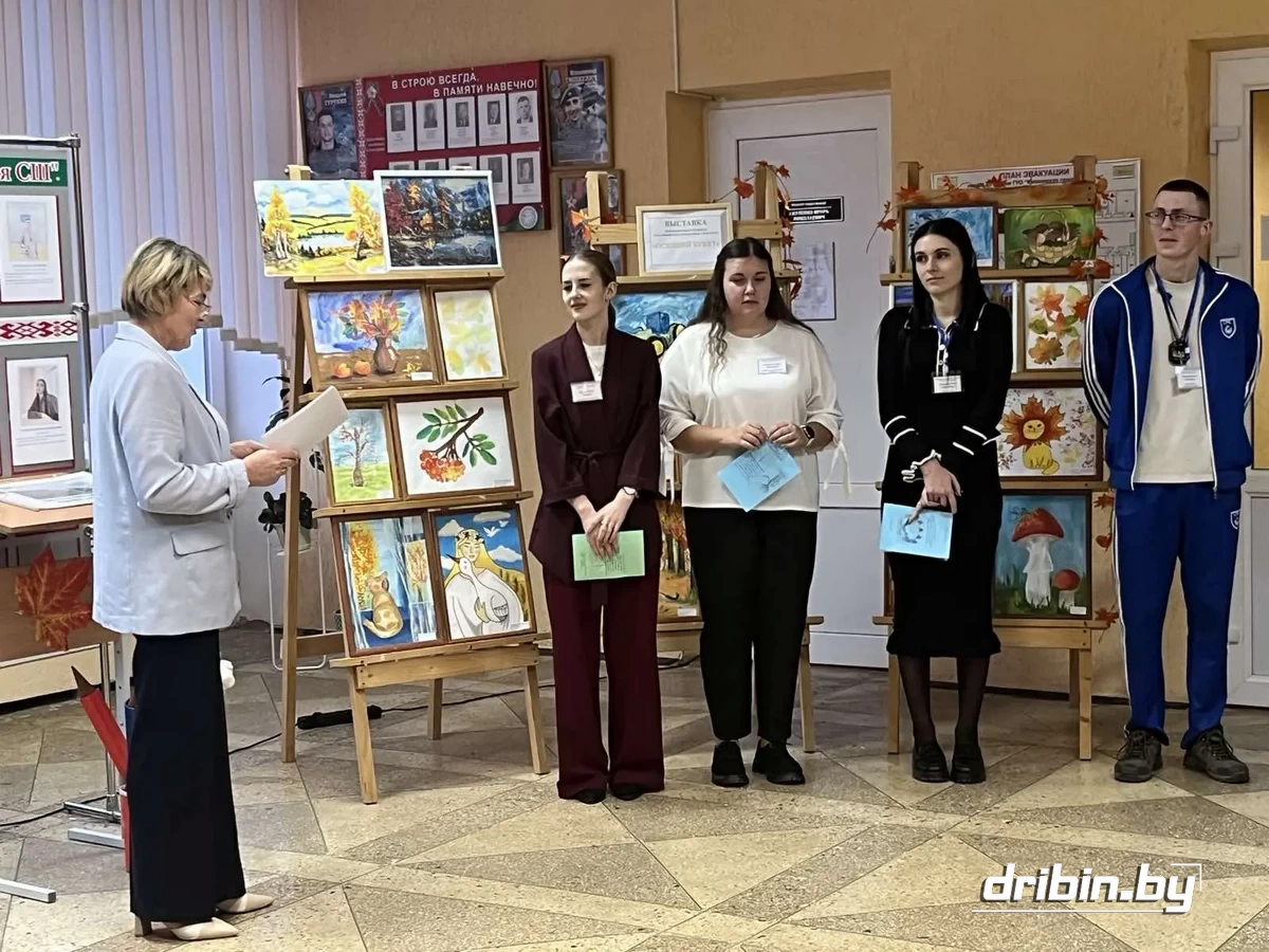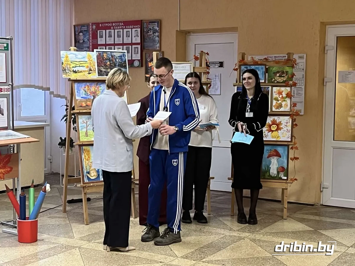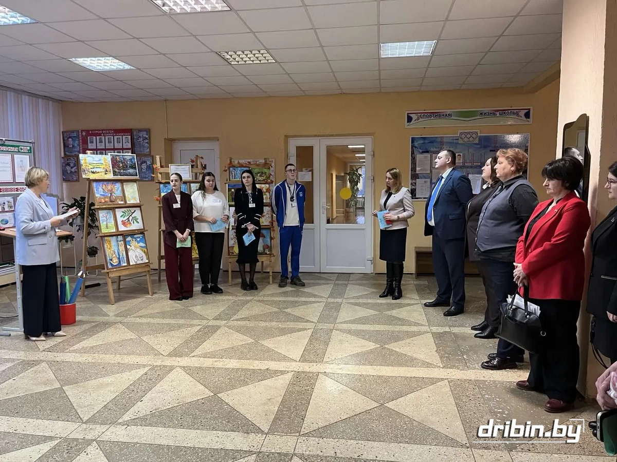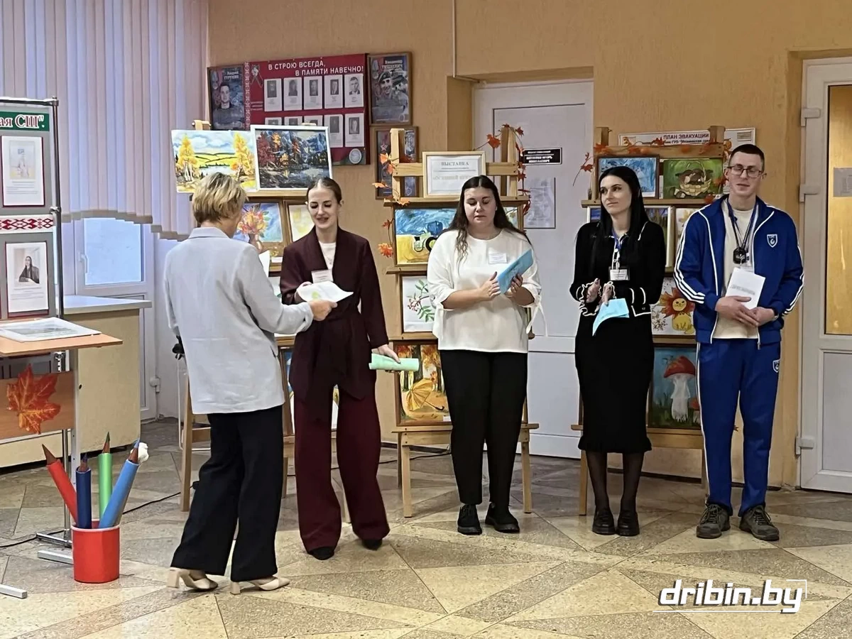 Теплую и сердечную встречу гостей подготовила педагог – организатор школы Светлана Мулюкова. Для них была развернута очень красивая, содержательная, яркая выставка поделок учащихся и творческих работ педагогов школы «Молодость и успех вместе». Заместитель директора по учебной работе Лариса Котова представила стендовую презентацию «Будущее начинается сегодня». Молодые учителя школы: Валерия Новикова, Артем Толкачев, учителя физической культуры и здоровья, Дарья Тузова, учитель физики, Юлия Самкнулова, педагог-психолог, — все они родились и выросли, получили среднее образование в Дрибинском районе; получив педагогические профессии, приехали на работу в родной район — провели самопрезентацию «Знакомьтесь, это мы!»