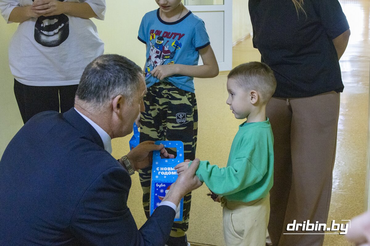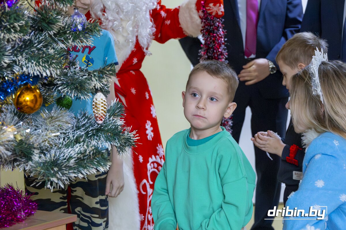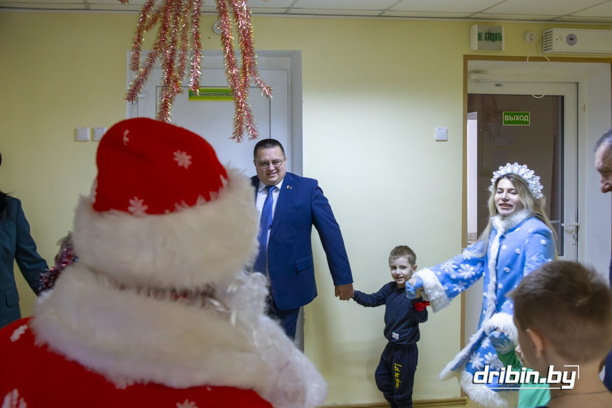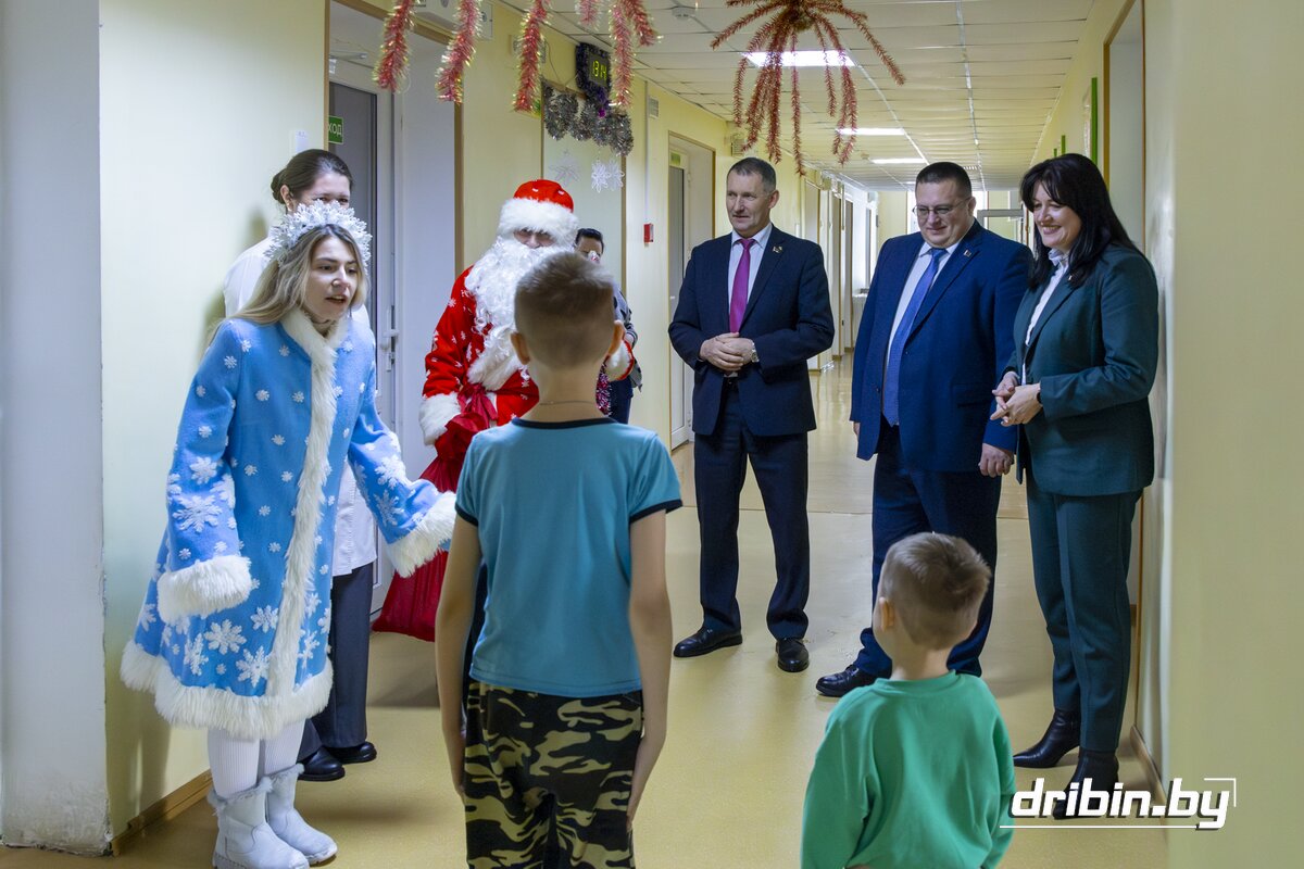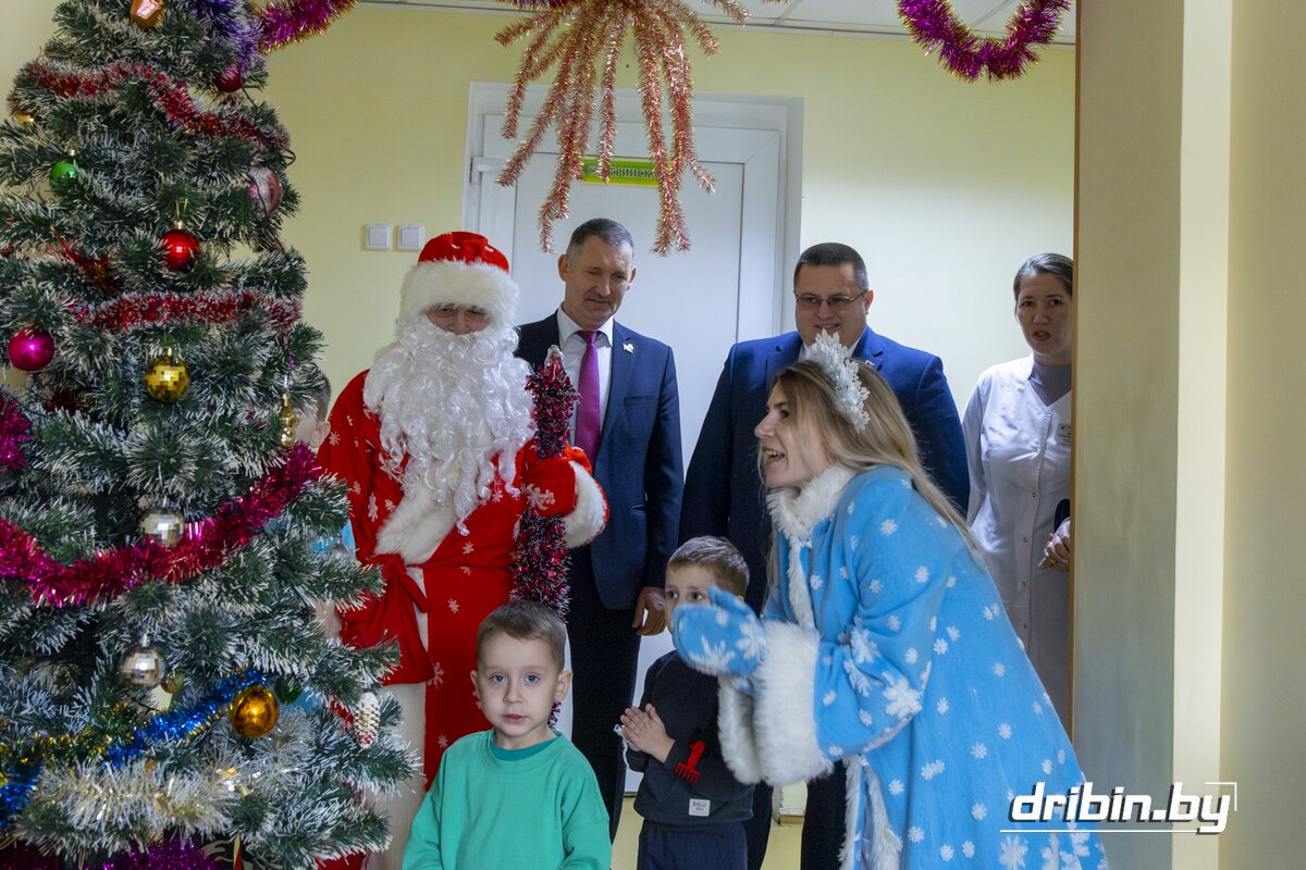 В последние дни уходящего года здесь проходят лечение трое маленьких пациентов. С приятной миссией их сегодня навестили глава Дрибинского района Дмитрий Чигирь, председатель Дрибинского районного Совета депутатов Тимофей Мартинович, заместитель председателя Дрибинского райисполкома Наталия Дубиковская, а также главные герои Нового года — Дед Мороз со Снегурочкой.