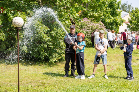 Одним из ярких моментов стала водная феерия от сотрудников Дрибинского районного отдела по чрезвычайным ситуациям, которые "снизили градус погоды.