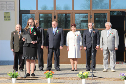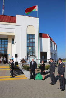 В торжественной обстановке право поднять Государственный флаг Республики Беларусь было предоставлено Дмитрию Василевскому, председателю райисполкома и Анне Халиковой, ученице 9 класса Дрибинской школы.